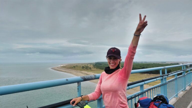 Nous allons continuer à rouler en longeant la piste cyclable “du Bonhomme”. La pluie se calme de plus en plus. Elle va s’arrêter à partir du pont de Noirmoutier. Nous passons le pont plus tranquillement qu’hier, en plus il y…