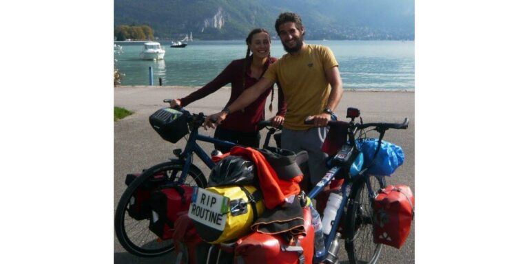 En roulant, il fait plus frais, mais aucun souci, nous nous habillons un peu plus chaudement. Pendant ce début de pédalage, on met chacun notre musique pour avancer. Moi j’ai mes écouteurs et Massimo son enceinte. Chacun son moment tranquille.…