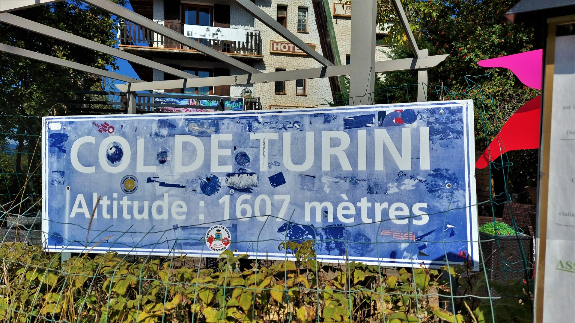 À la fin, bientôt à l’arrivée, nous tirons sur nos jambes pour avancer. Ça commence à tirer. Nous arrivons avec une grande joie et grande satisfaction au sommet du col de Turini. On se tape dans la main ✋ Nous sommes contents d’avoir franchis ce col, avec nos vélos et notre chargement.
