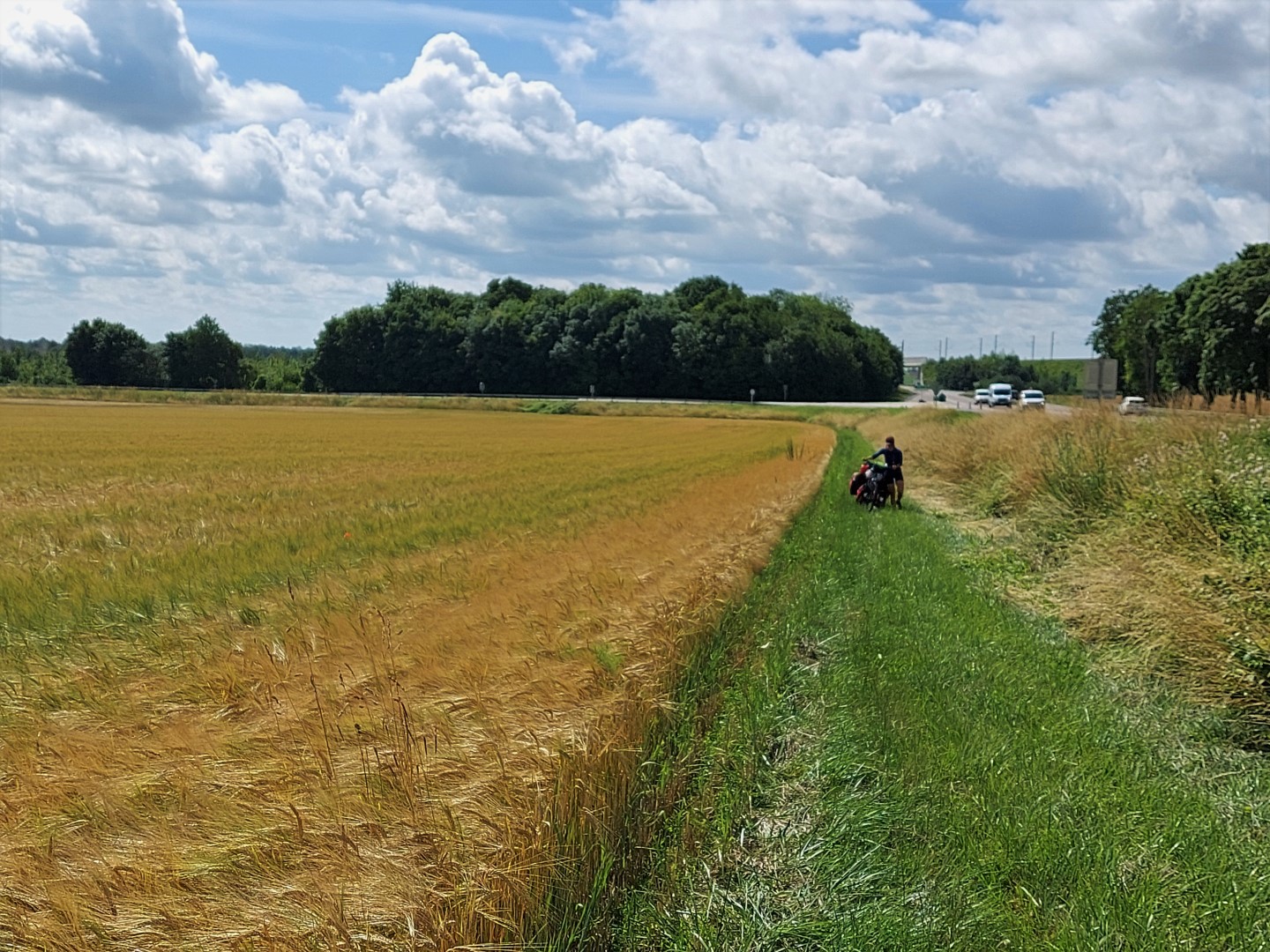 Nous essayons de longer une départementale sans se mettre dessus car beaucoup trop de camions qui vont très vites car les routes sont en lignes droites.