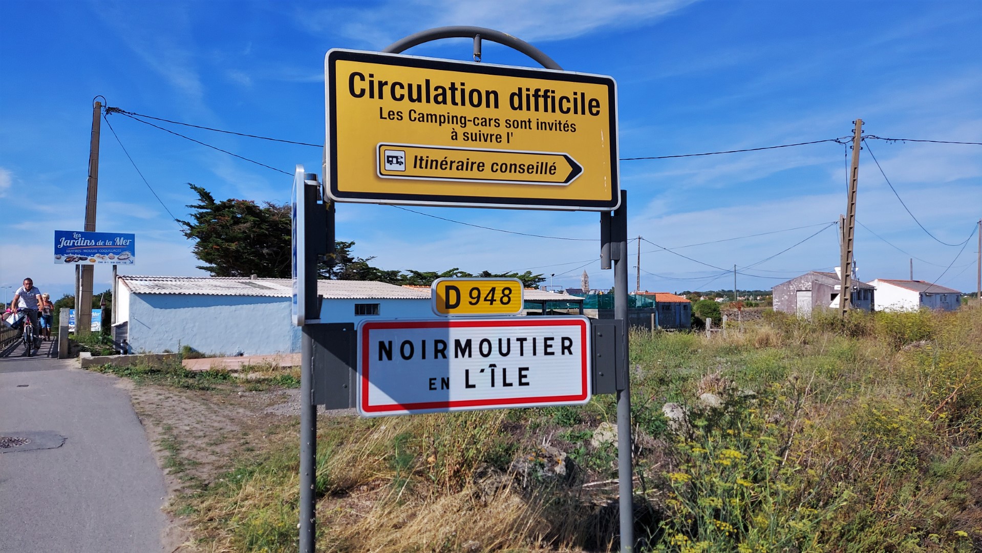 Arrivés sur le pont de Noirmoutier, c’est plutôt agréable de le passer à vélo car il y a une piste cyclable dans les deux sens avec du coup la possibilité d’admirer la superbe vue.