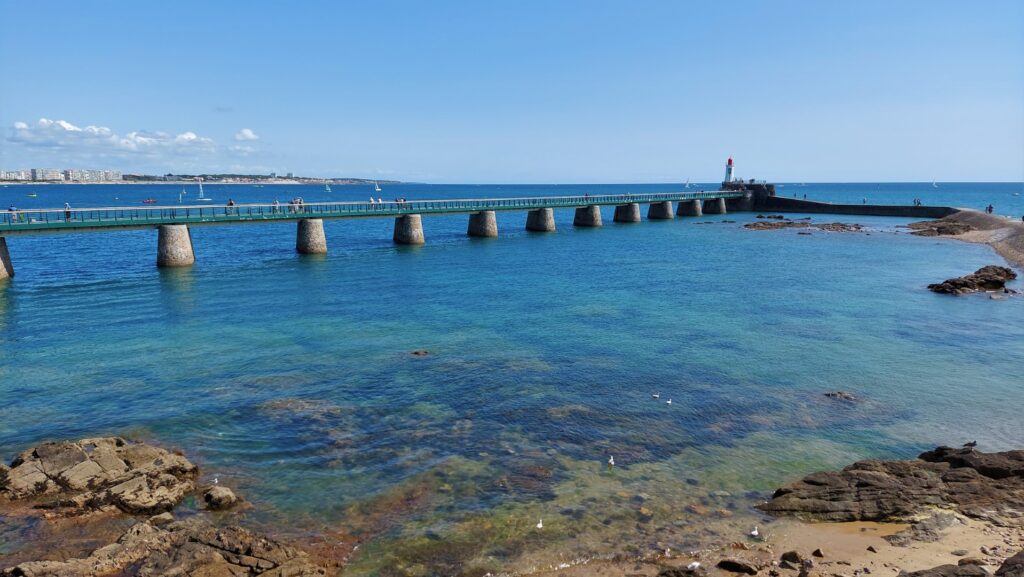 Nous avons la vue sur la grande plage des Sables d’Olonne. Personnellement, je n’avais pas envie d’y aller car c’était blindé de monde. En plus la marée était haute alors la plage était réduite niveau grandeur. Les personnes étaient bien collées, un plaisir. 🤣