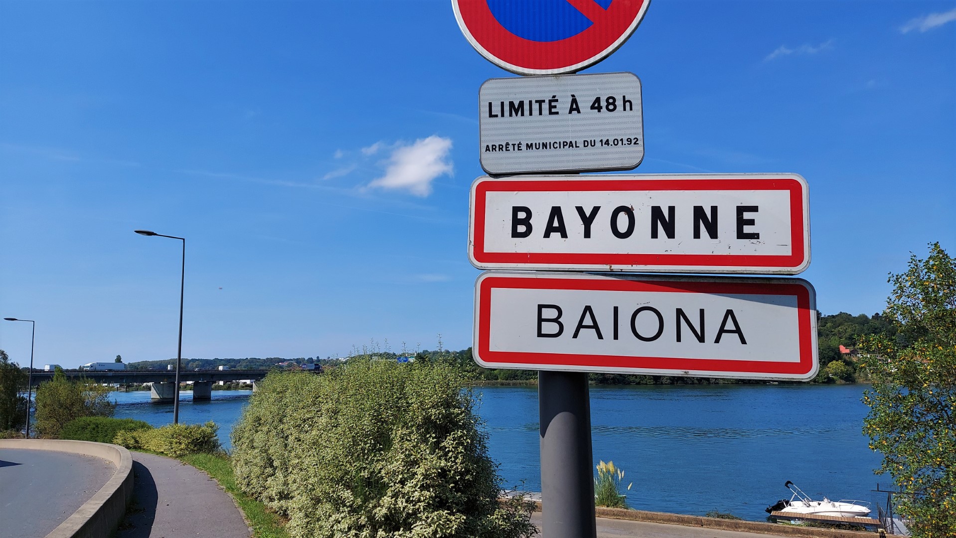 Nous allons bien sûr passer dans le coin du piment d’Espelette. À partir de Bayonne, nous allons longer le fleuve, l’Adour. C’est plutôt cool comme décor, rouler au bord de l’eau, c’est mieux qu’avec la circulation ! Bien sûr nous avons quitté la côte atlantique mais c’est pour mieux retrouver la mer Méditerranée, Massimo a hâte !